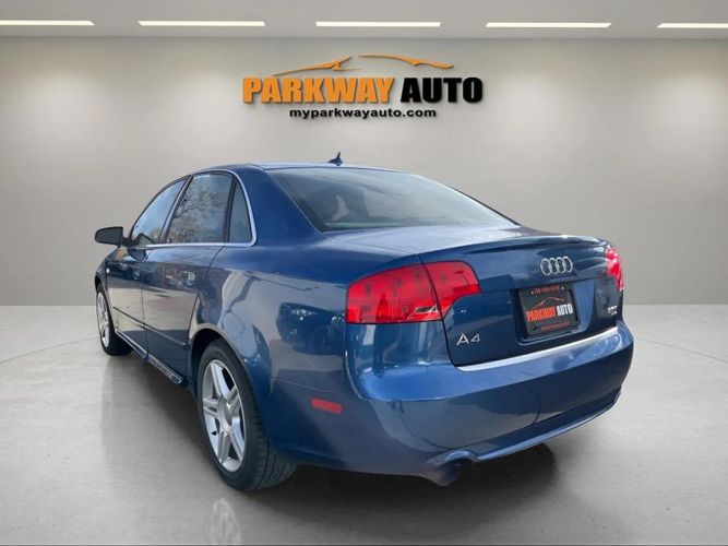 Experience the perfect blend of style, performance, and luxury with this 2008 Audi A4 2.0T quattro Sedan. Dressed in a stunning Ocean Blue Pearl Effect exterior, this sedan is designed to turn heads wherever you go. Powered by a robust 2.0L I4 Turbo engine delivering an impressive 200 horsepower and 207 lb-ft of torque, it offers exhilarating performance combined with Audi's renowned all-wheel-drive system for superior handling in any condition.